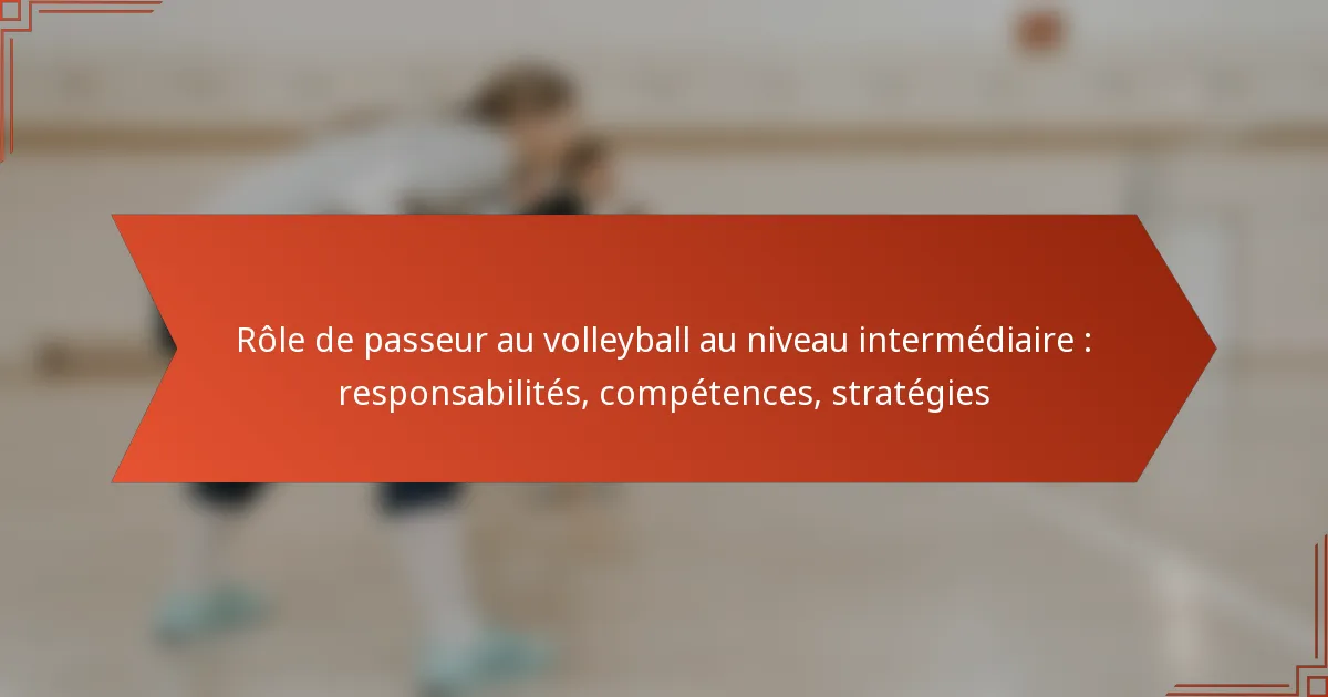 Quelles sont les principales responsabilités d’un passeur de volleyball au niveau intermédiaire ?